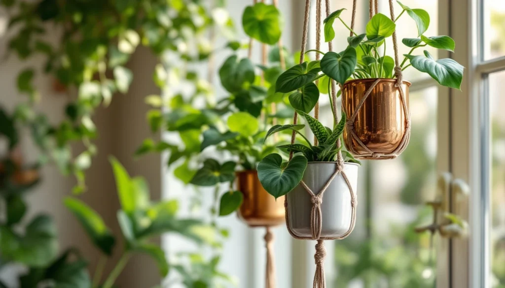 Lorsqu’on parle de plantes suspendues, les plantes retombantes figurent en tête de liste. Elles ajoutent une touche chaleureuse et organique aux espaces, tout en nécessitant peu d’entretien. Ces plantes sont idéales pour ceux qui souhaitent ajouter une dimension visuelle supplémentaire à leur décoration intérieure.
