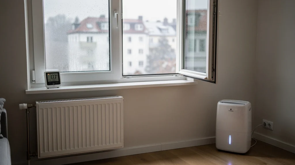 Un logement mal aéré retient l’humidité. Si les fenêtres sont rarement ouvertes ou si la ventilation mécanique est insuffisante, la vapeur d’eau n’est pas évacuée correctement. De ce fait, la condensation s’installe plus facilement, surtout en hiver lorsque les écarts de température sont importants.