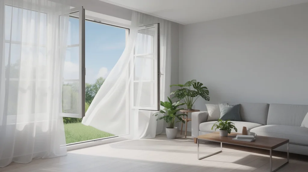 Il ne suffit pas d’ouvrir une fenêtre en entrebâillant légèrement. Pour une aération vraiment efficace, il est préférable de créer un courant d’air en ouvrant plusieurs fenêtres opposées, même pour une courte durée. Ainsi, l’air se renouvelle beaucoup plus rapidement, limitant la perte de chaleur en hiver ou la hausse de température en été.