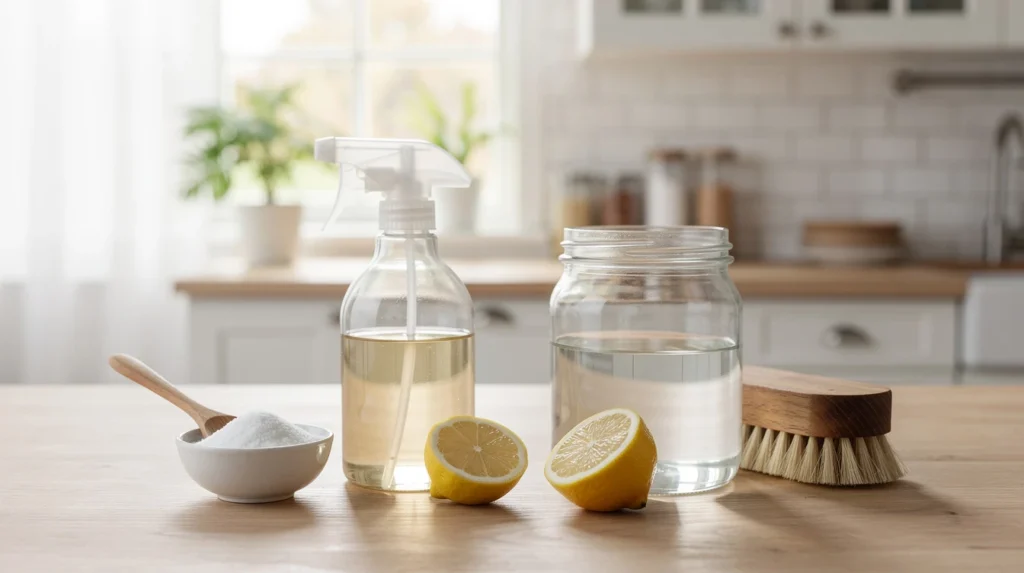 La cuisine concentre souvent graisses et résidus alimentaires. Pour un entretien écologique, privilégiez le bicarbonate de soude sur les plans de travail et les plaques de cuisson. Par ailleurs, le vinaigre blanc désinfecte l’évier et élimine les odeurs tenaces du réfrigérateur. Pour nettoyer la vaisselle, le savon de Marseille ou le savon noir s’avèrent parfaits.