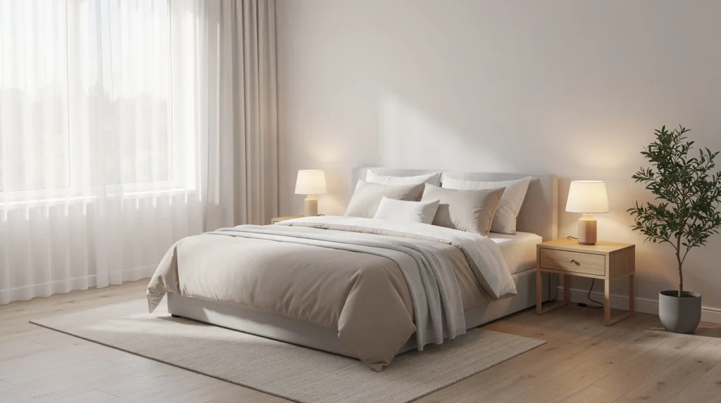 Par ailleurs, organiser chambre sommeil ne consiste pas uniquement à ranger ou décorer. Cela implique de prendre en compte la luminosité, la température, l’acoustique, l’aération ou encore la présence de distractions. D’une part, chaque détail compte pour créer une ambiance zen et relaxante. D’autre part, une chambre bien pensée encourage la relaxation mentale et physique, indispensables pour un repos profond.